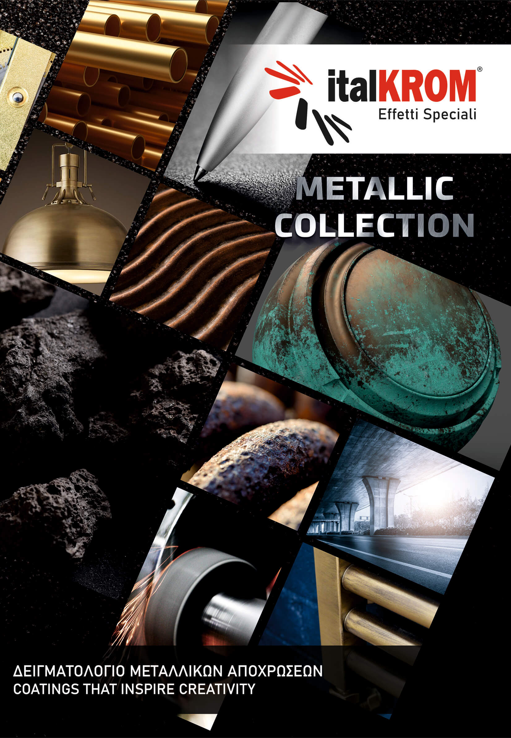 Η σειρά προϊόντων ΙΤΑLΚRΟΜ Εffetti Speciali, παρουσιάζει το χρωματολόγιο METALLIC COLLΕCΤIOΝ. Αποτελείται από 24 mαtt μεταλλικές ακρυλικές αποχρώσεις, δύο συστατικών, οι οποίες μπορούν να βαφούν σε διάφορες επιφάνειες, όπως ξύλο, μέταλλο, γυαλί και πλαστικό. Εφαρμζόντας το ακρυλικό γυαλιστερό βερνίκι CL1000, οι επιφάνειες γίνονται high gloss. Συνοδεύονται από αναλυτικές οδηγίες χρήσης, ώστε η εφαρμογή τους να γίνεται τόσο απο επαγγελματίες, όσο και ερασιτέχνες. Μεταμορφώστε τις κατασκευές και ταν χώρο σας, επιλέγοντας μία από τις μοναδικές αποχρώσεις METALLIC COLLECTION.